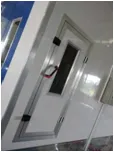 1 vastgestelde kant gehangen deur aluminium poedercoating oppervlaktebehandeling duurzame deurfaam: 700 *1700mm (W*H), met veiligheidsslot en handvat. |